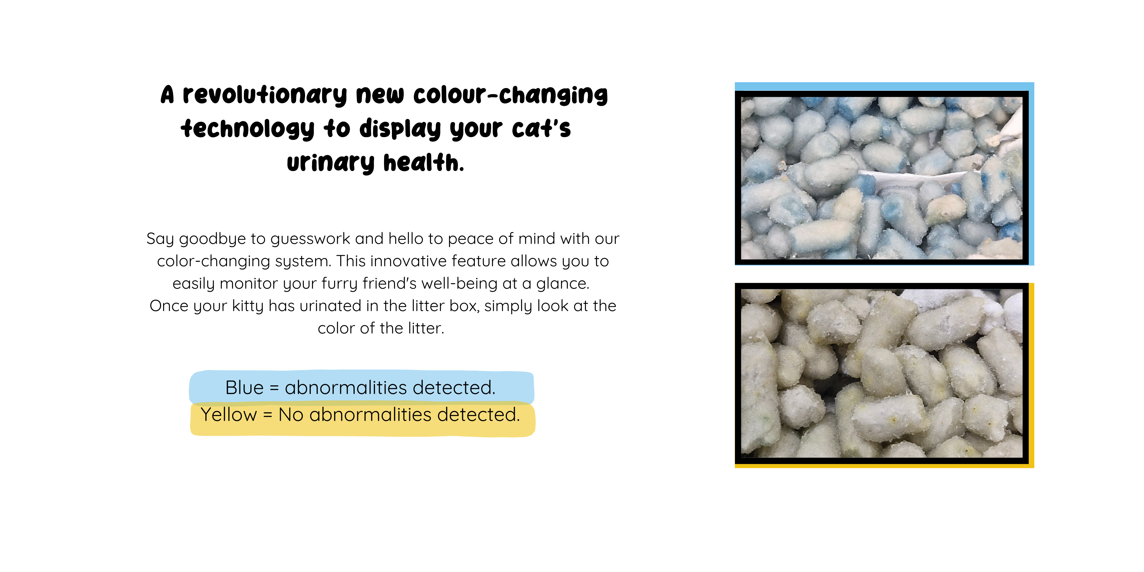 Keep your furry friend healthy and happy with Cloud Litter. Made from cotton, this color-changing cat litter not only keeps your litter box clean, but also monitors your cat's health. No more guessing - let Cloud Litter do the work for you!
